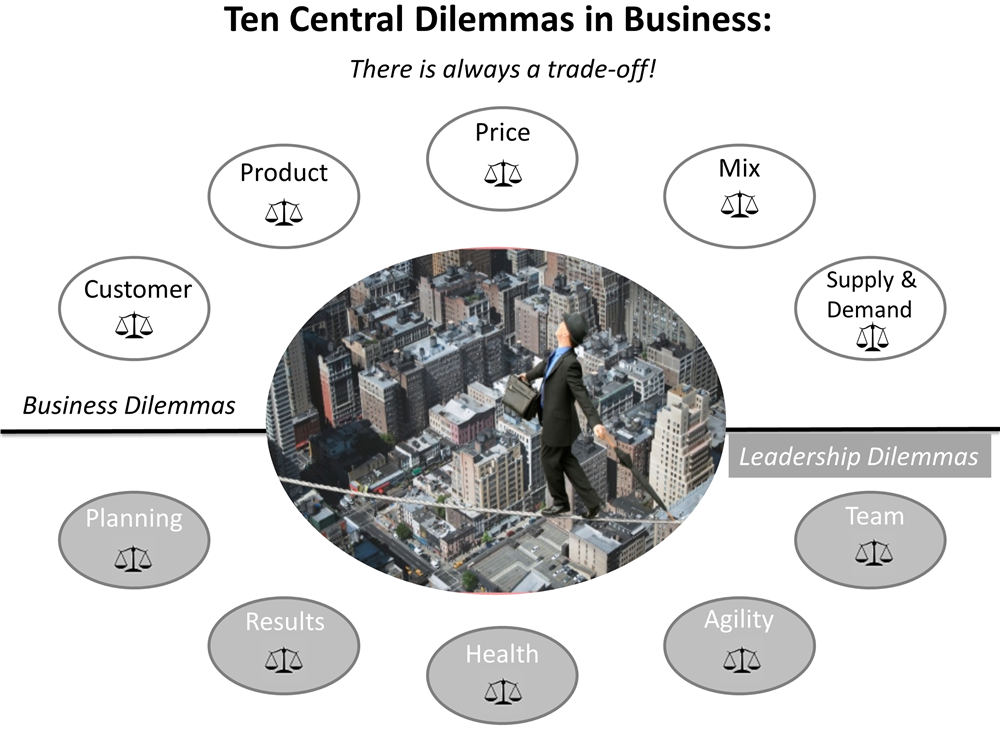 I explore the ten dilemmas and the creative dilemma resolution process used by top performers in much more detail in my book: A Systematic Guide to Business Acumen and Leadership using Dilemmas .